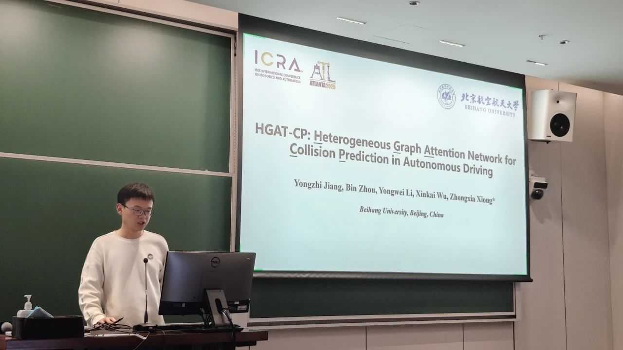 加强党的领导是实现高水平科技自立自强的前提和基础,为推动党建与科研深度融合,与会党员基于所学专业聚焦智能交通、自动驾驶等前沿方向进行分享与研讨。best365英国体育在线2023级硕士研究生蒋勇智以《HGAT-CP:基于异构图注意力网络的自动驾驶碰撞风险预测》为题进行了分享,他通过图神经网络构建动态交通交互模型,实现多车场景下的风险预判;清华大学车辆学院2024级博士研究生宋致应介绍《V2X协同感知技术》研究的系统性成果,对多车感知融合、低延迟通信机制等关键技术进行了深入解读。分享后,大家针对技术实现路径、模型泛化能力与工程落地需求展开热烈讨论。