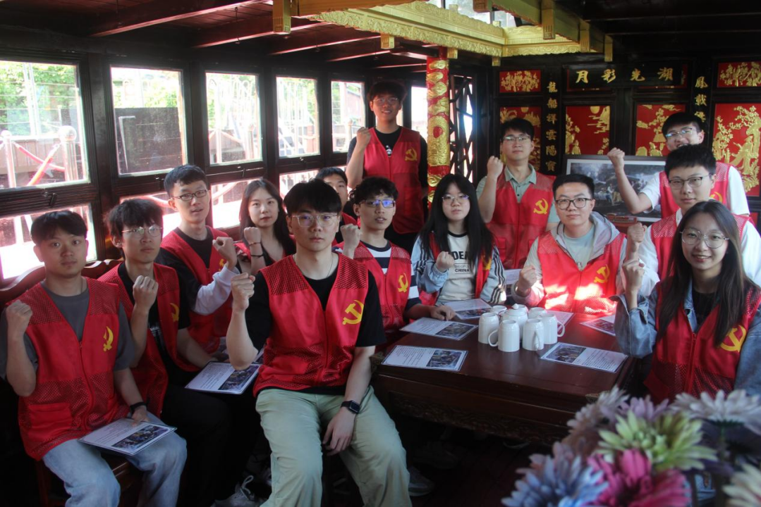 在雁栖湖红船精神广场,支部党员开展了一场别开生面的“溯源初心”主题学习。全体同志瞻仰了按1:1比例复刻的中共一大会址模型,采用“情景再现+角色体验”模式,在停泊于湖畔的南湖红船复制船上,进行《红船建党》剧本演绎。现场,党员重温入党誓词,面向鲜红党旗庄严宣誓,新时代共产党员的承诺在青山绿水间久久回荡。