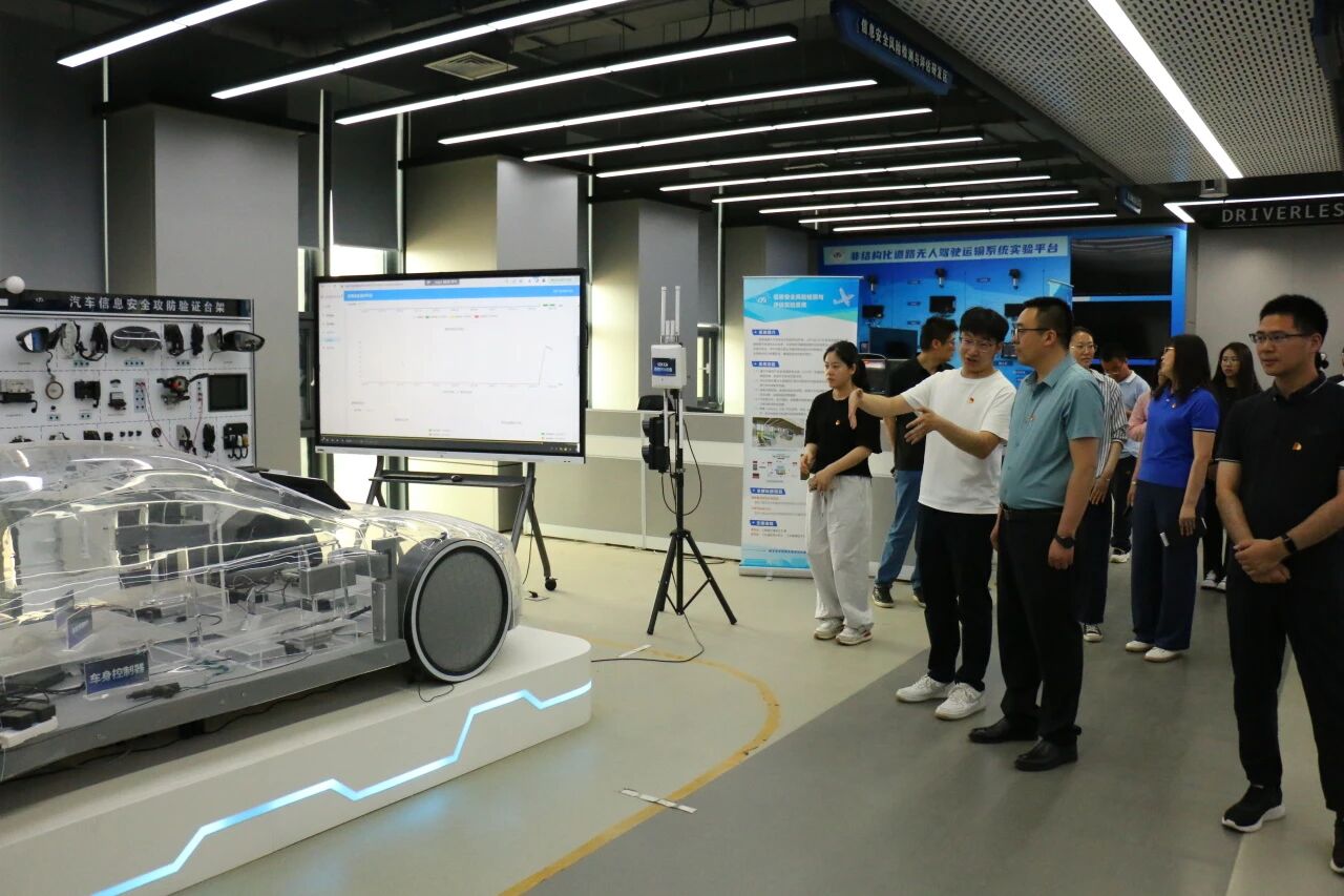 在实验室科研人员的引导下,沙河镇机关代表首先参观了北航车路一体智能交通全国重点实验室,实地了解实验室在智能网联交通、车路协同系统、交通感知融合与自动驾驶测试等方面的关键技术成果,参观了智能交通沙盘、仿真测试平台、数据中控系统等一批科研创新设备。
