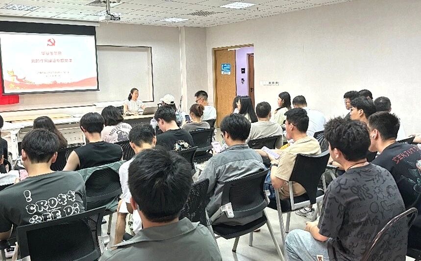 6月12日,学院党委副书记郭祖博以“严守纪律底线 永葆党员本色”为主题,为毕业生党员讲授专题党课。党课聚焦三个重点,一是提醒各位党员要时常学纪知纪明纪守纪,坚守纪律底线,牢记共产党员的第一身份;二是讲解组织关系转接政策,督促各位党员做到应转尽转;三是寄语毕业生党员,要始终保持北航人“德才兼备、知行合一”的优良品格,积极投身在交通强国建设的新征程中。6月16日,智能交通基础设施系研究生党支部邀请学院党建辅导员讲授党的作风建设专题党课,为毕业生党员划清纪律红线。