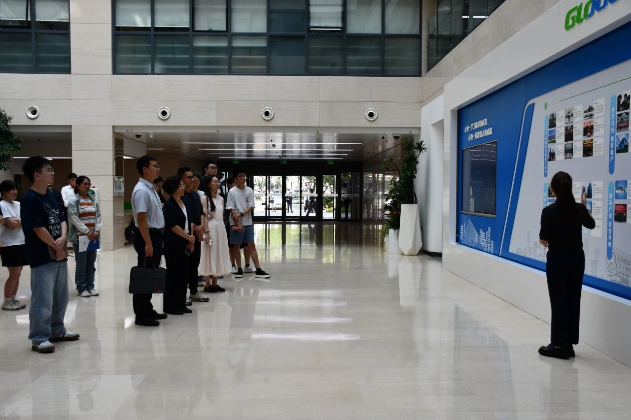 在讲解员的带领下,大家一起学习了解了广联达公司的发展历程,并参观了广联达数字展厅。展厅通过一系列建筑全生命周期的数字化创新应用实例全方位展示了广联达在推进建筑业智能化转型方面取得的突破。从引领行业的BIM三维可视化设计平台,到利用大数据与人工智能赋能的智慧城市解决方案,每一环节都生动呈现了前沿技术的实践应用,让同学们直观感受到了科技创新如何重塑行业生态、提升产业效能。