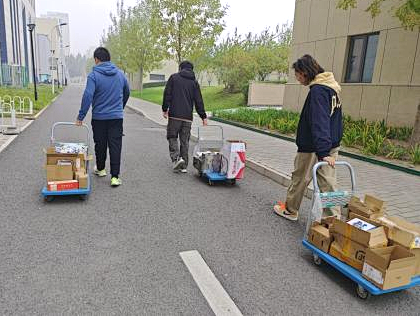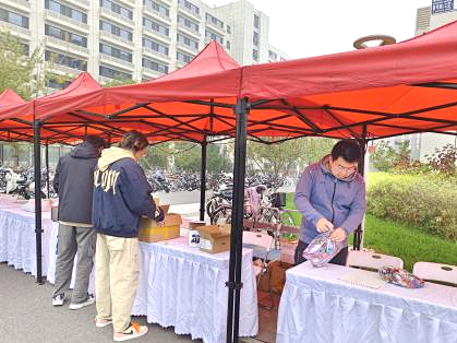 秋风萧瑟,晨光熹微,志愿者们便开始搬运物资、布置场地,以饱满的热情等待同学们的到来。