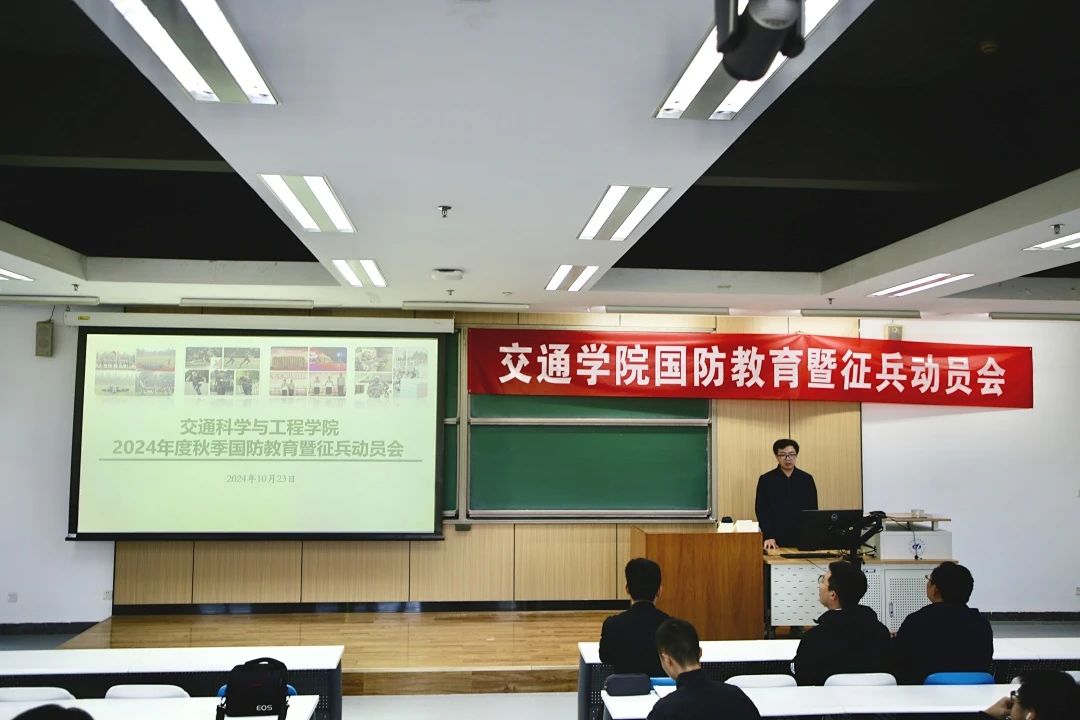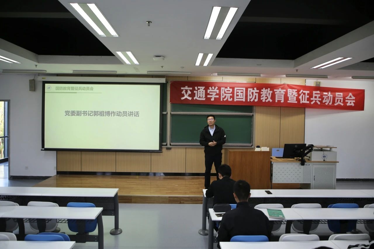 郭祖博作征兵动员讲话,他号召广大交通学子,在充分了解自身兴趣和特长、确保身体健康达标、获得家人理解支持的基础上,踊跃报名参军,为捍卫国家安全、助力中华民族伟大复兴贡献青春和力量。