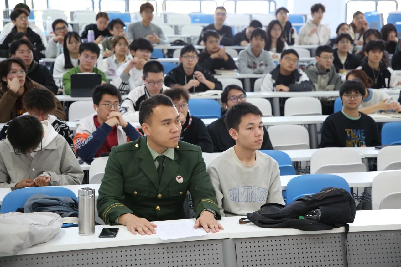 邵英华宣贯了2024年参军入伍的相关政策,从强军召唤、基本要求、优待政策、先进典型和应征报名五个方面进行了详细的介绍,为同学们解答了关于身体条件、复学升学优待、经济补贴、就业安置和报名时间方式等方面的问题,随后介绍了我校多位优秀退役大学生士兵的光辉事迹。