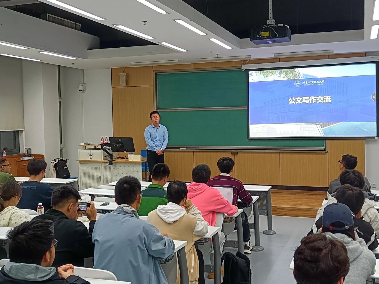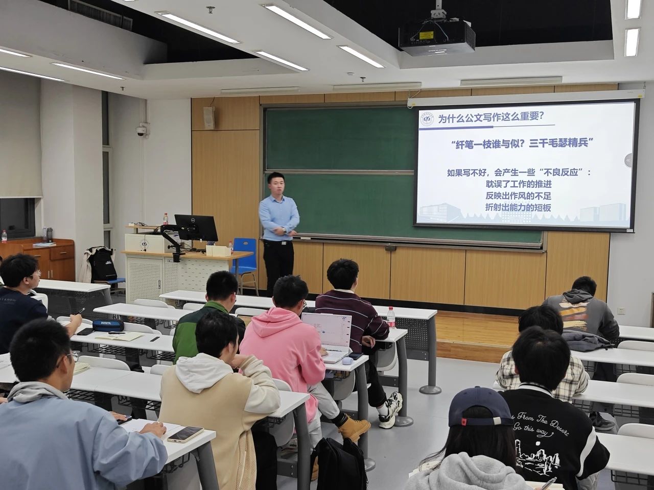 为深入贯彻落实习近平新时代中国特色社会主义思想和党的二十大精神,进一步提高学生骨干公文写作能力,10月30日,best365英国体育在线在沙河校区J3-201举办“赋能计划”专题培训第三讲,学生工作部胡天豪老师以“公文写作交流”为主题面向学生骨干开展专题培训。