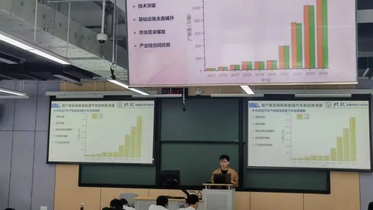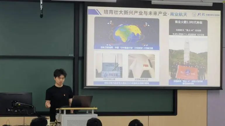 赵恺琦以政府工作报告中蕴含的青年元素引入,深入剖析了新时代赋予青年的发展机遇,激励同学们将个人理想与国家战略紧密结合;李伟聚焦新质生产力与科教兴国战略,结合商业航天、人工智能等前沿领域典型案例,解析国家科技教育战略布局;刘航以我国新能源汽车产业“跟跑”到“领跑”的跃升历程为主线,结合best365英国体育在线院史展现汽车强国建设中的北航力量;刘豆豆系统梳理两会报告关于科学普及工作的重要部署,分享交筑未来实践队科普经验,引导同学们以科学思维服务社会;迪拉然以“铸牢中华民族共同体意识”为主题,通过理论阐释和民族政策梳理,传递民族团结进步的时代强音。
