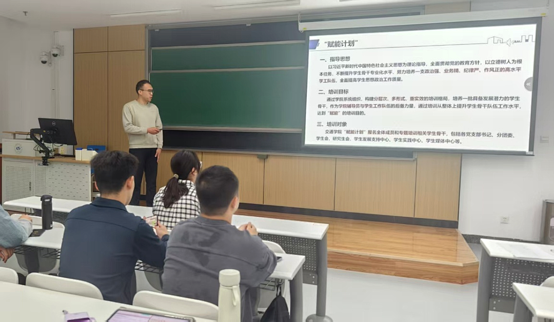 刘家琪首先介绍了本期“赋能计划”的培训方案,通过学院系统组织,构建了“价值-认知-能力-实践”四维递进的培养模式,强调理论学习与实践锻炼相结合,旨在引导学员在“干中学、学中干”的过程中不断提升综合素质,全面提高学生思想政治工作质量。
